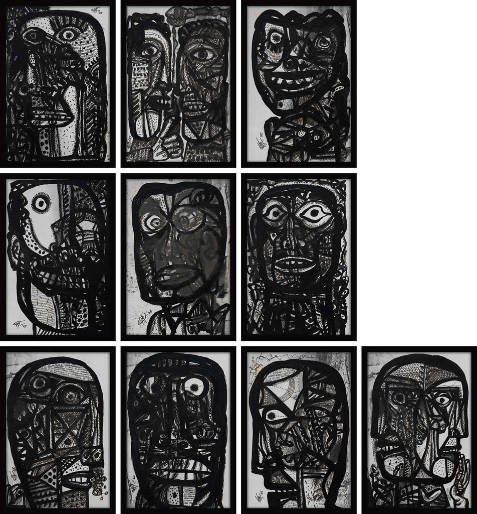 With incredible artistic propensity, Laxman brings forth his intuitive expressions through postcard-sized crosshatched drawings, put together as silent conversations with his favourite artist. The drawings represent the conflict and sufferings of common people in their mundane reality. -