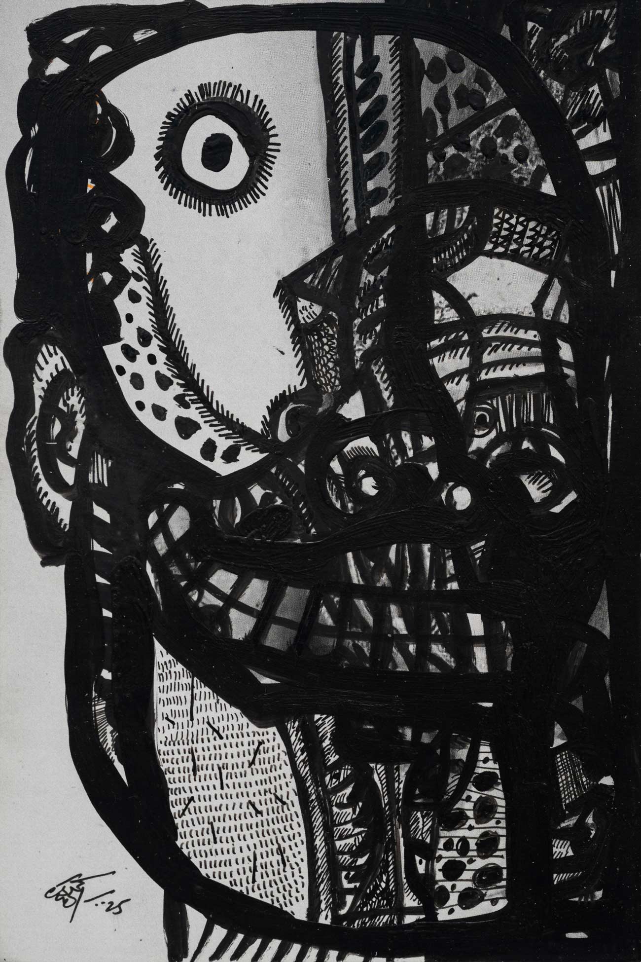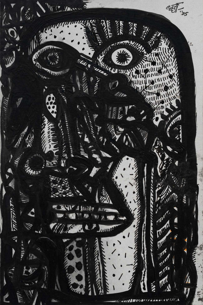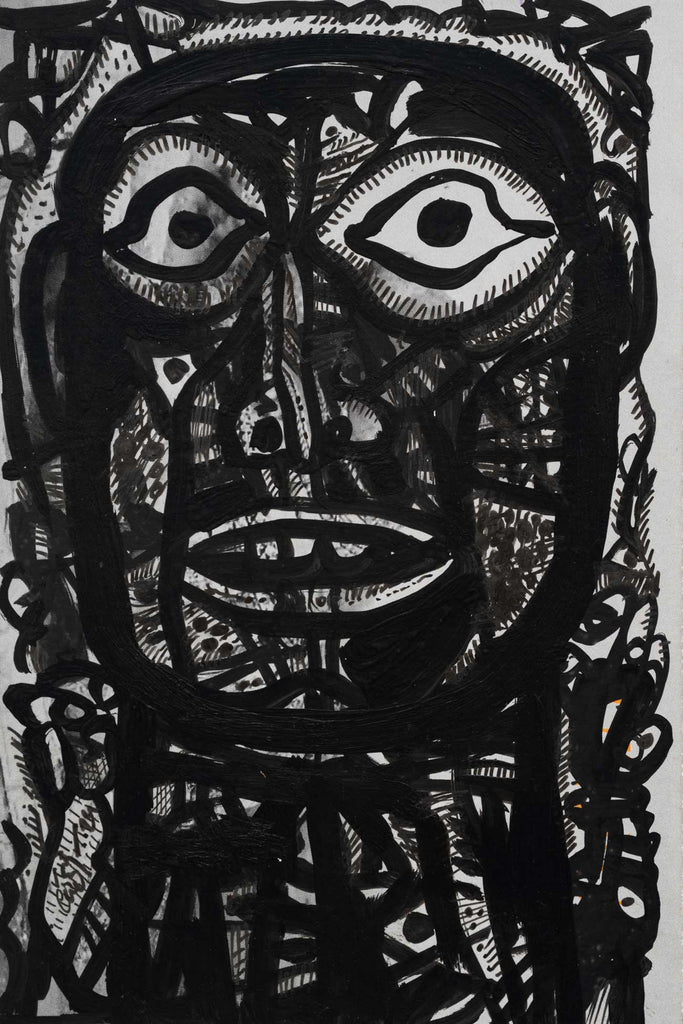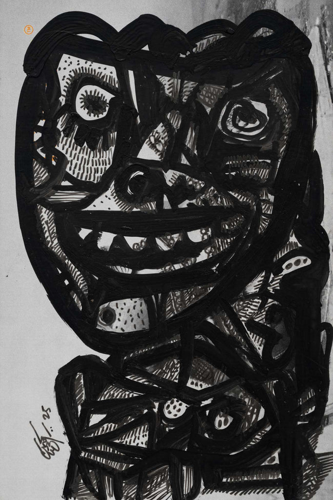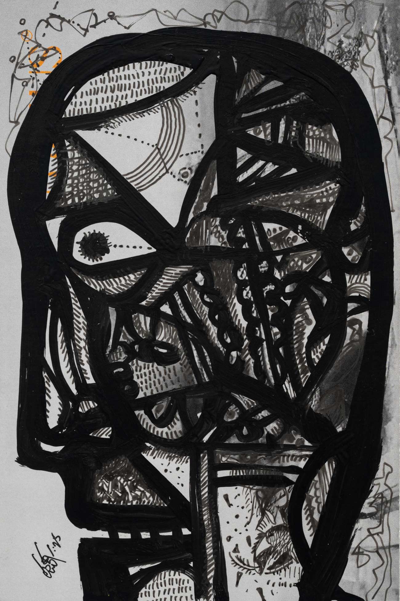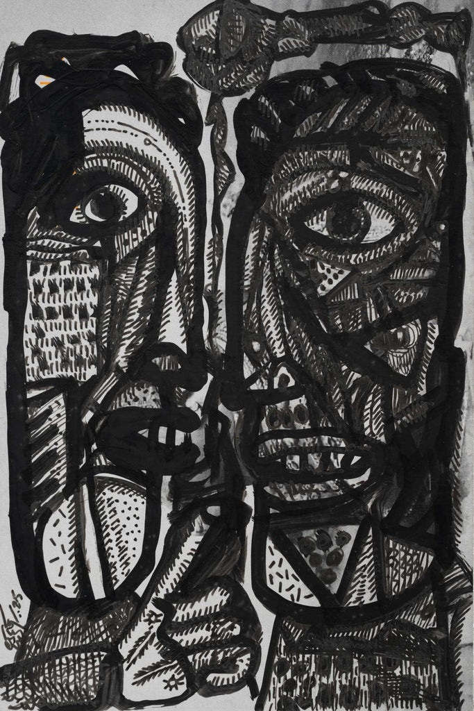 Read MoreThis artwork is part of the 'Remembering Souza' series. Constructing the human figure as a site of conflict, desire, and irreverence, this series is Laxman Aelay’s complementary homage to highly revered modern progressive Indian artist, F.N. Souza (1924-2002). It manifests by confronting the restless energy of the artist in creating an uncompromising modernist depiction of the human figure as never fixed, but always shifting between the sacred and the profane. In doing so, dense layers of strokes cry out to the unfinished and unsettling condition of human life.