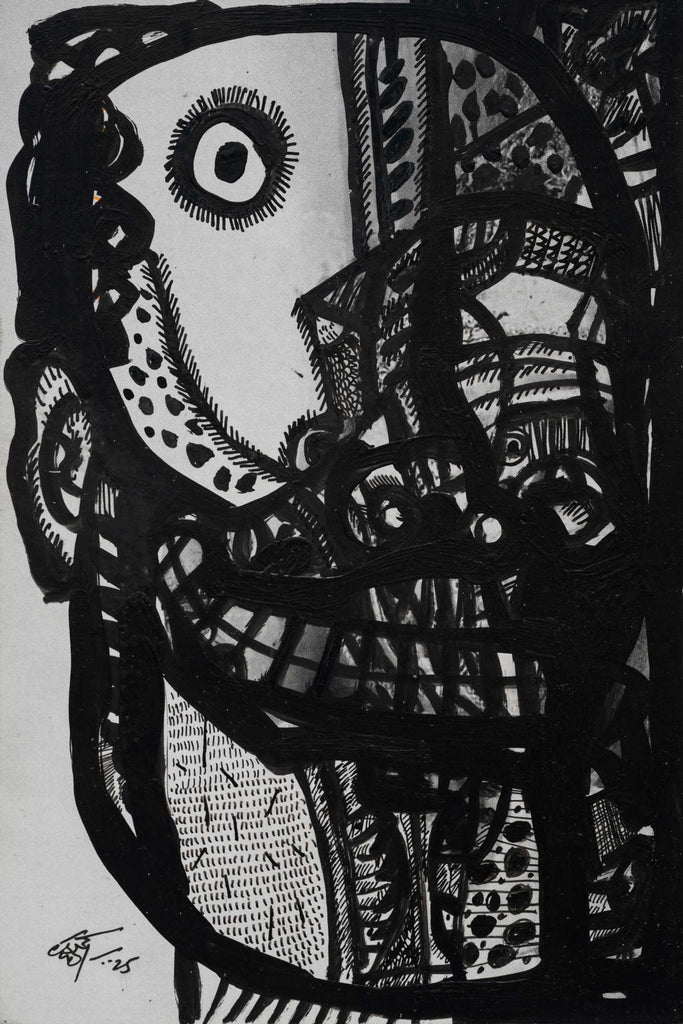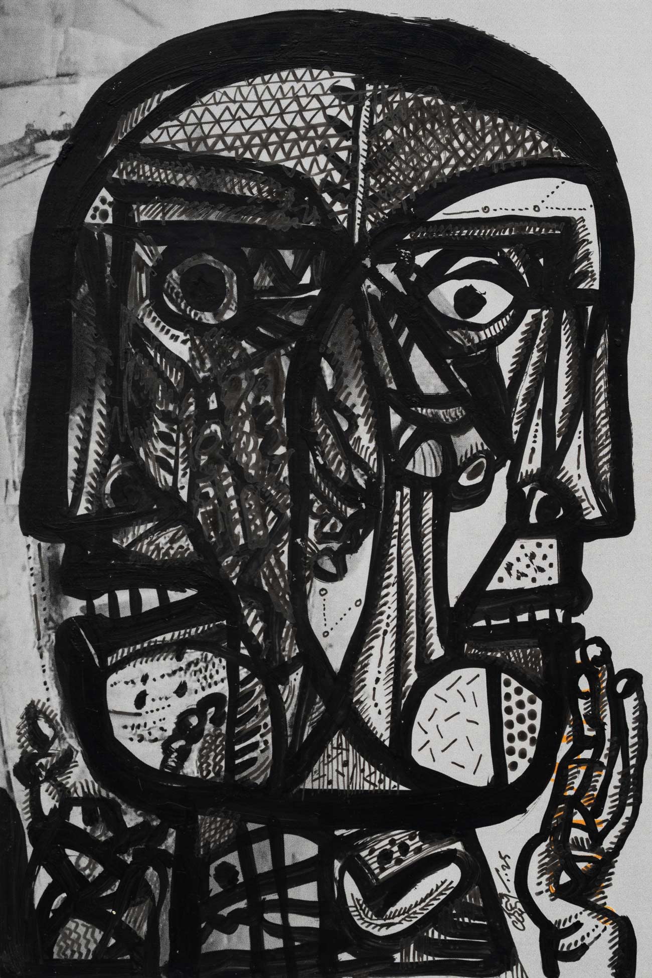 This artwork is part of the 'Remembering Souza' series. Constructing the human figure as a site of conflict, desire, and irreverence, this series is Laxman Aelay’s complementary homage to highly revered modern progressive Indian artist, F.N. Souza (1924-2002). It manifests by confronting the restless energy of the artist in creating an uncompromising modernist depiction of the human figure as never fixed, but always shifting between the sacred and the profane. In doing so, dense layers of strokes cry out to the unfinished and unsettling condition of human life.