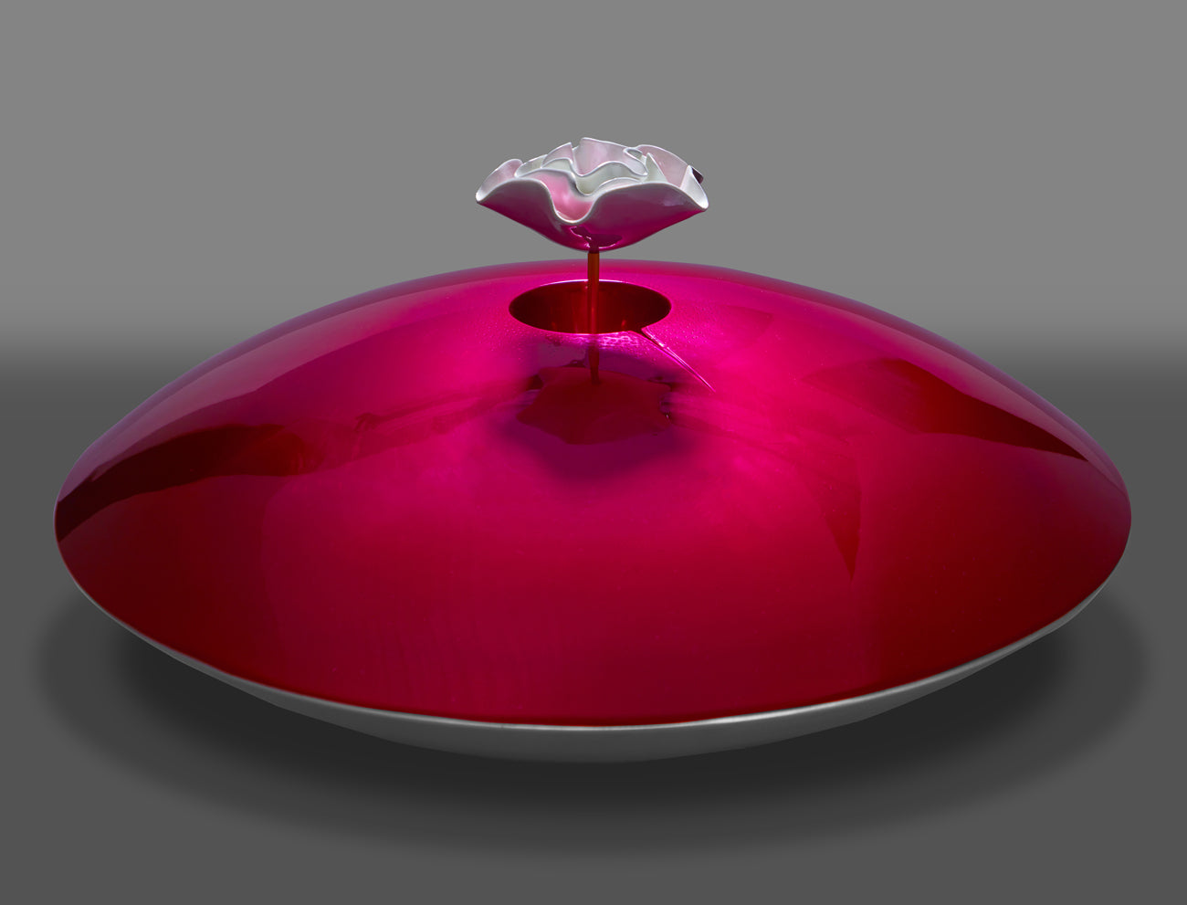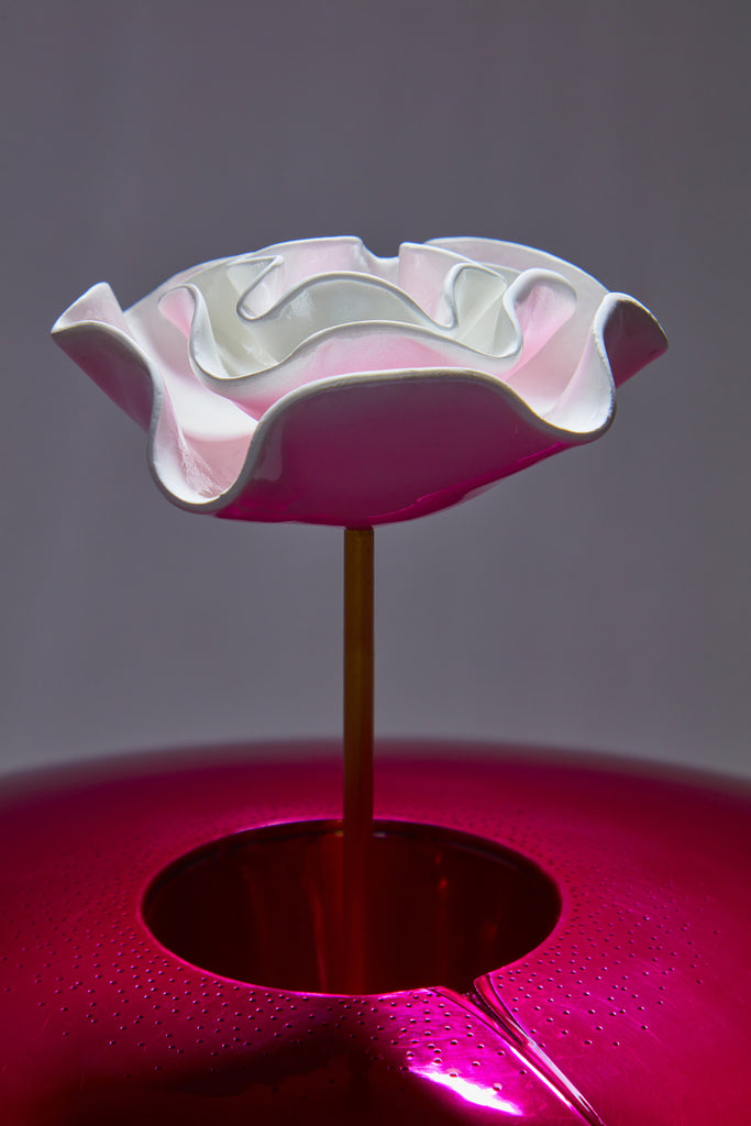This work reflects creation as a presence suspended in space. Form feels weightless, held between stillness and expansion. A luminous surface receives and reflects, while vibrant tones suggest awakening from within. At its centre, a lotus unfolds — consciousness emerging into the vast. Creation here is not grounded, but expansive — open, infinite, and aware.